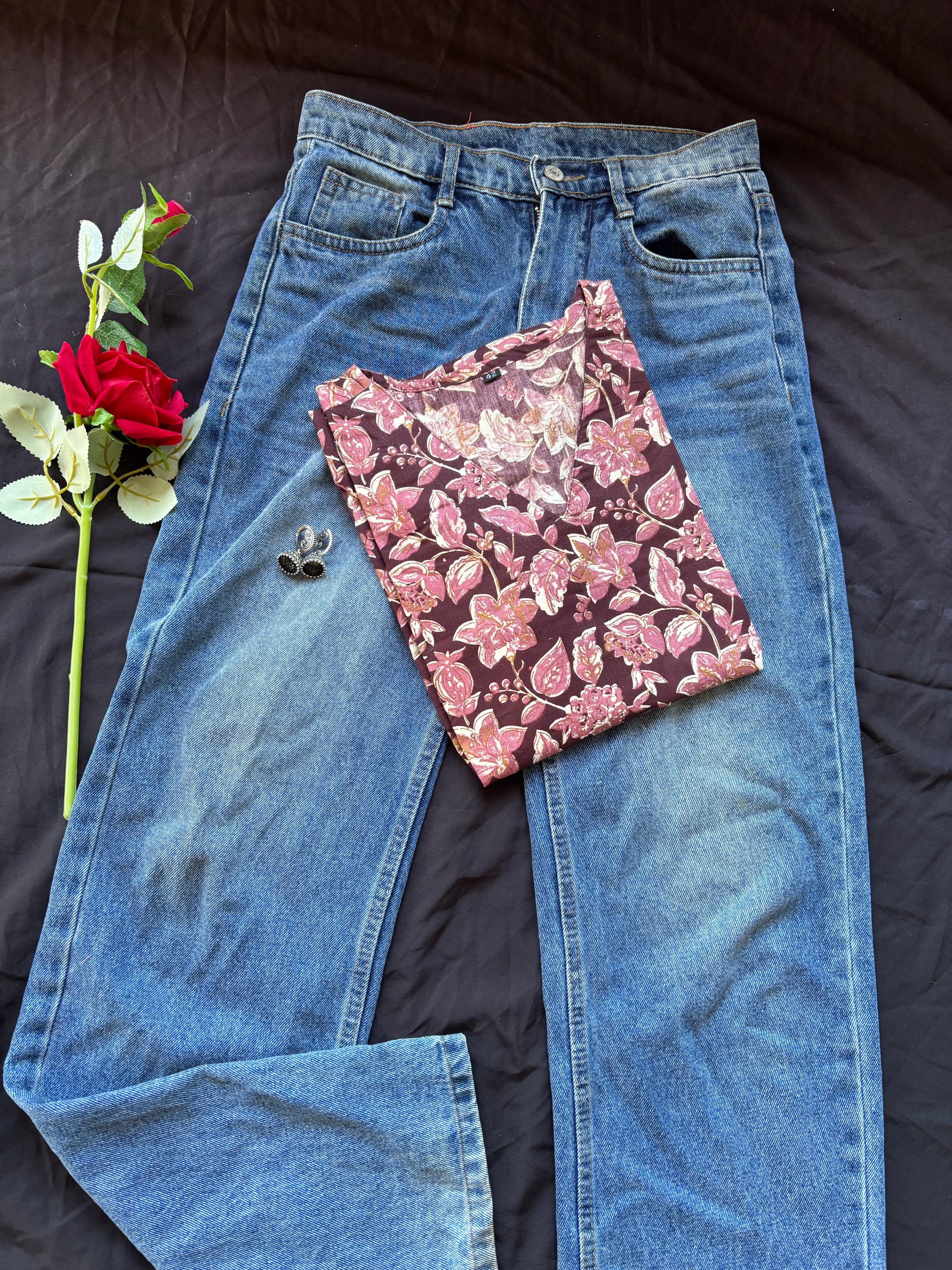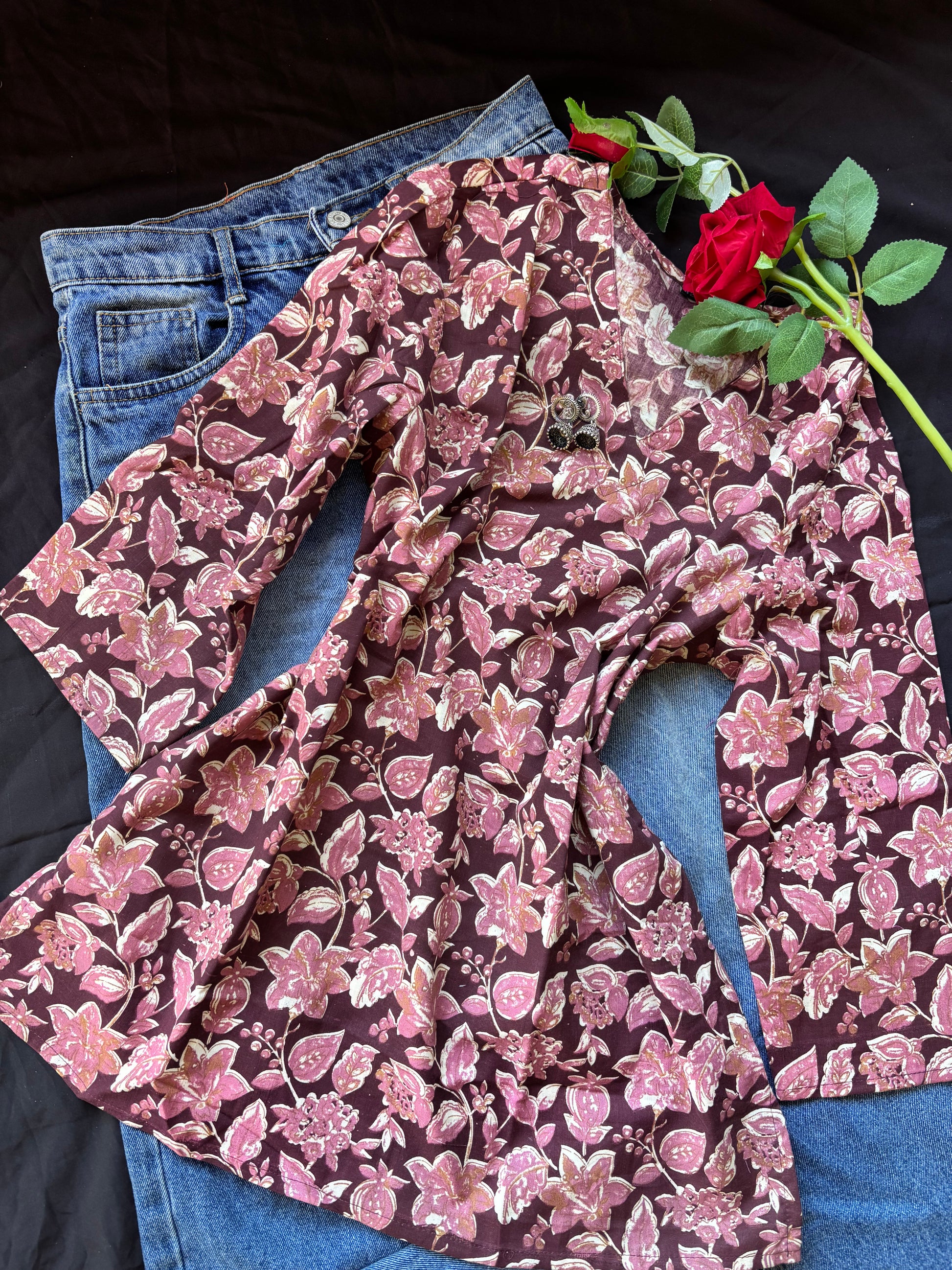 Maroon floral cotton kurti